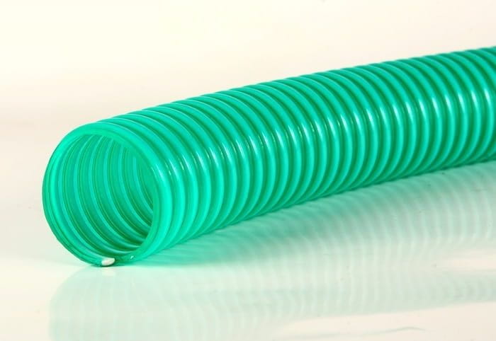 Ścianka koloru zielonego ze zmiękczonego PVC, biała spirala z twardego PVC, powierzchnia wewnętrzna gładka.