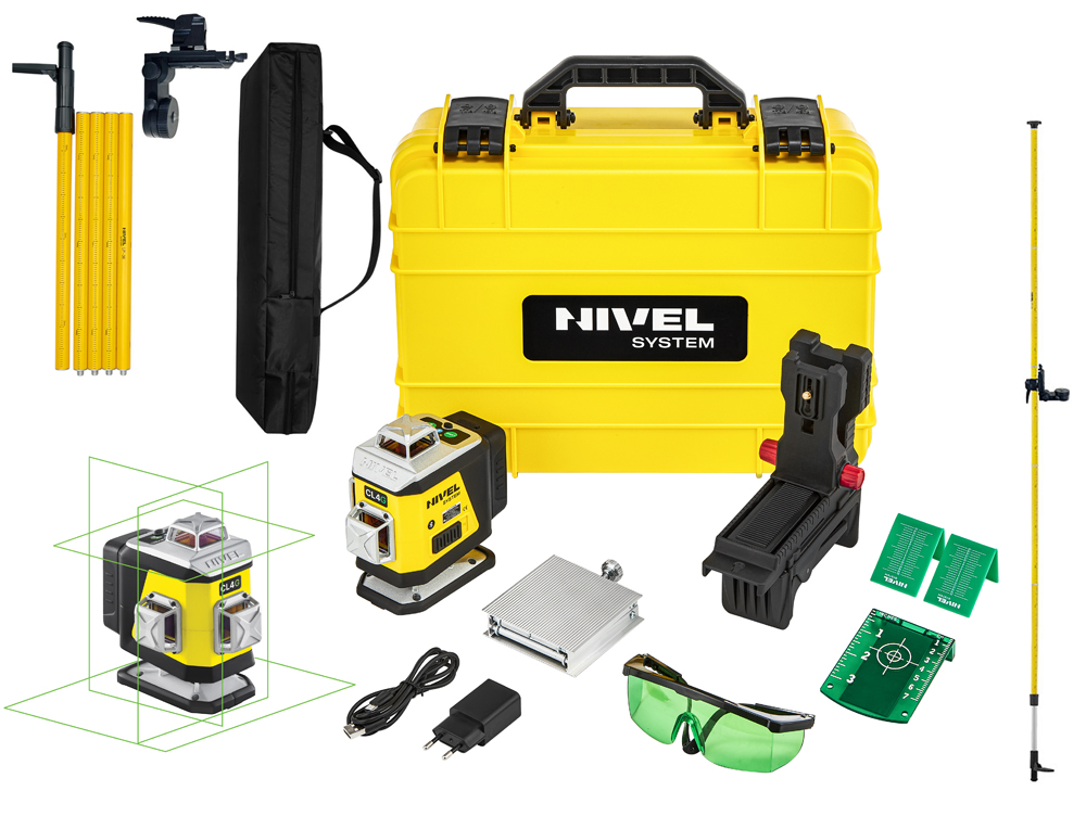 Laser krzyżowy NIVEL SYSTEM CL4B poziomica niebieski + Tyczka LP-36